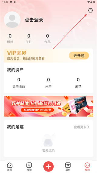 2、进入我的页面内,点击右上角设置的功能图标。