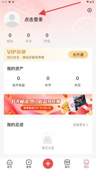 2、在个人中心页面的顶部,用户需找到并点击登录的区域。