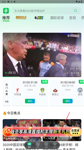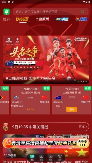 1、打开爱奇艺体育APP,登录账号进入到首页,在导航栏中找到并点击国足的标签。