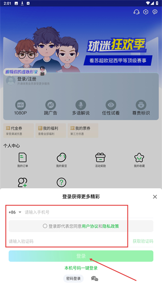 3、输入手机号、验证码后,点击登录的按钮即可。