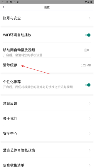 3、进入设置的界面内,找到并点击清除缓存的功能按钮。