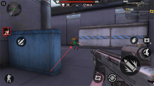 1、利用掩体如蓝色立柱掩护,瞄准敌方角色发起攻击,积累击杀数。