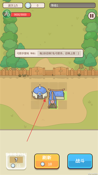 1、查看提示每隔15秒召唤1名弓手,召唤上限2,准备部署堡垒防御。