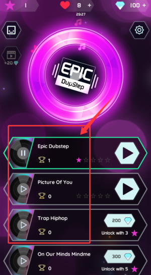 2、玩家能够在游戏内自由挑选心仪的音乐来开启游戏之旅,让游戏体验与个人音乐喜好完美融合,增添别样乐趣。