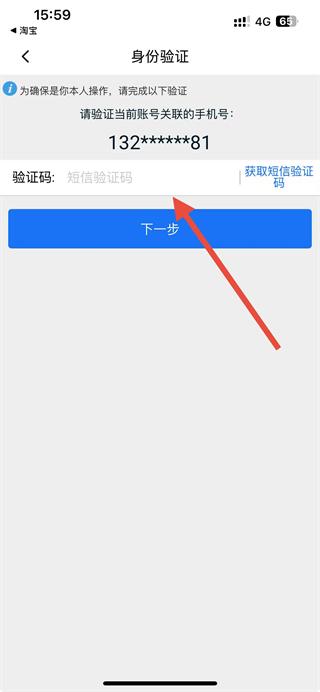 4、在身份验证页面,点击获取短信验证码,输入收到的验证码后点击下一步,即可继续完成手机号修改。