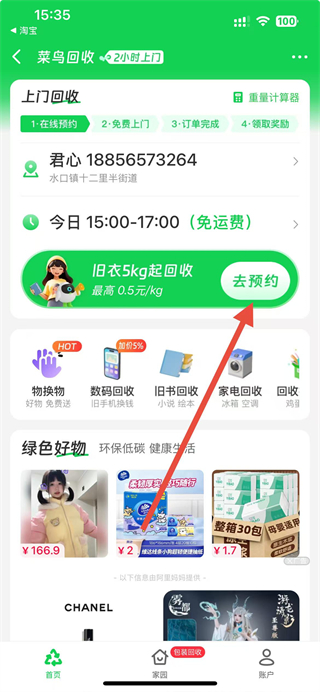 3、填写并确认地址、时间等信息后,点击对应的去预约按钮。
