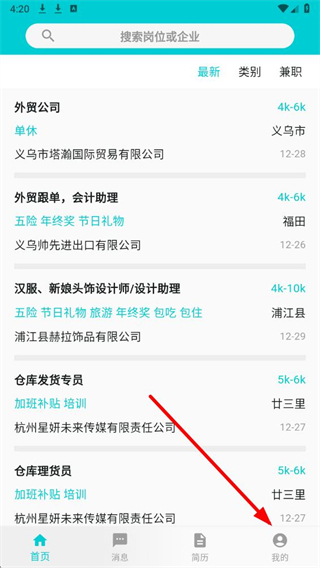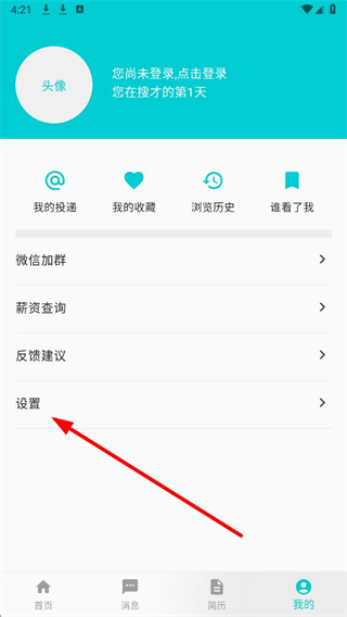 1、进入搜才app,在界面底部点击我的按钮,进入个人页面。