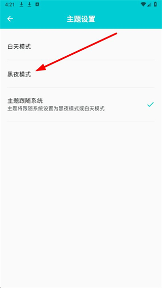 4、在主题设置页面,选择黑夜模式选项,即可将搜才app切换为深色模式。