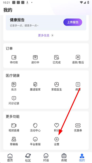 2、在页面的更多功能板块中,找到设置选项并点击,进入设置界面。