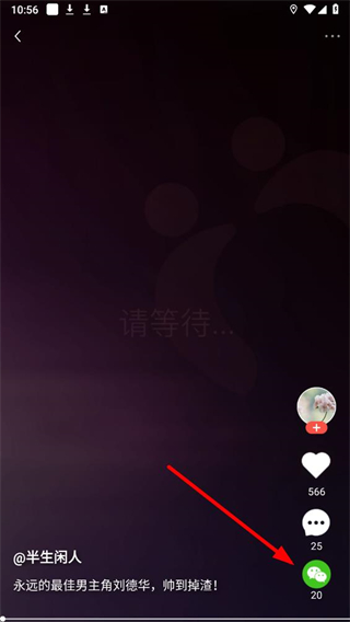 3、在视频播放界面,找到右侧的微信图标并点击,弹出包含分享渠道的选择菜单。