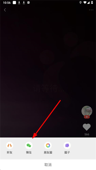 4、在分享菜单中,选择微信选项,跳转至微信界面后选择要分享的对象,即可完成视频分享操作。