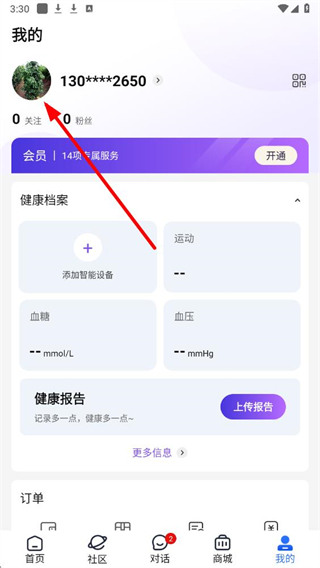 1、在老来健康的我的页面,点击顶部的账号区域,进入个人资料相关操作界面。