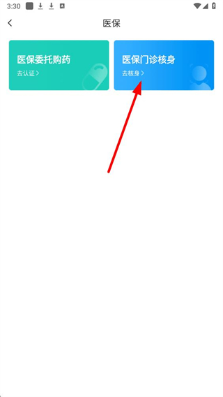 3、在医保界面,点击医保门诊核身对应的去核身按钮,进入门诊核身的信息填写页面。