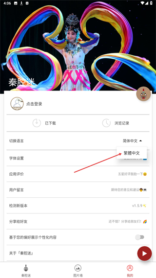 1、打开秦腔迷APP,进入首页点击右下方我的图标。