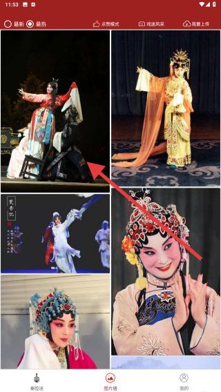 2、点击照片墙进入到场景内,观看每个角色演出的照片,玩家也可上传不同演出的照片以及点赞的模式。