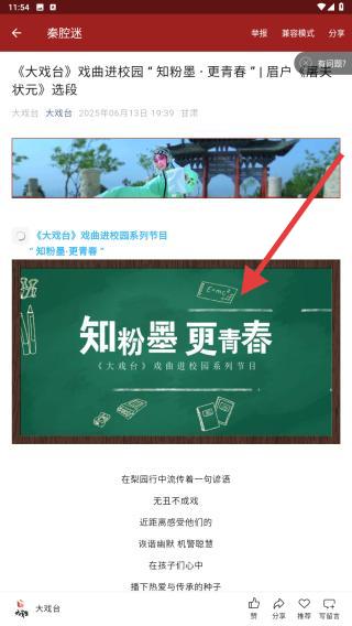 3、这是戏曲校园知粉墨的选段,观察此内容的片段了解背后的情节故事发展,秦腔感受传统艺术的文化内涵。