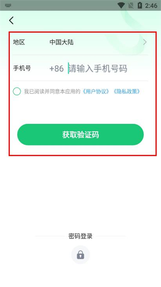 3、在注册页面输入手机号码,勾选同意协议后点击获取验证码。