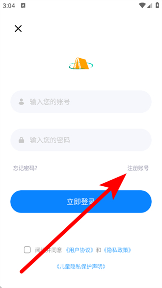 3、在登录页面,点击注册账号选项,进入注册账号页面。
