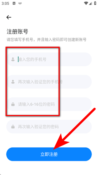 4、在注册账号页面,输入手机号,设置密码,点击立即注册,完成账号注册。