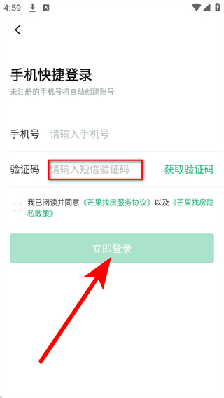 4、将收到的短信验证码填入验证码框,勾选相关协议后,点击立即登录完成账号登录。