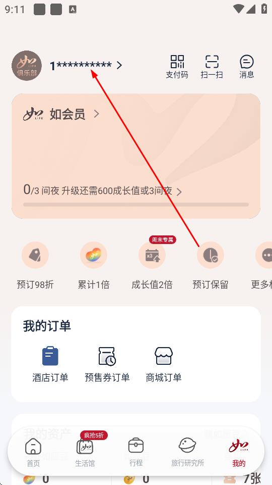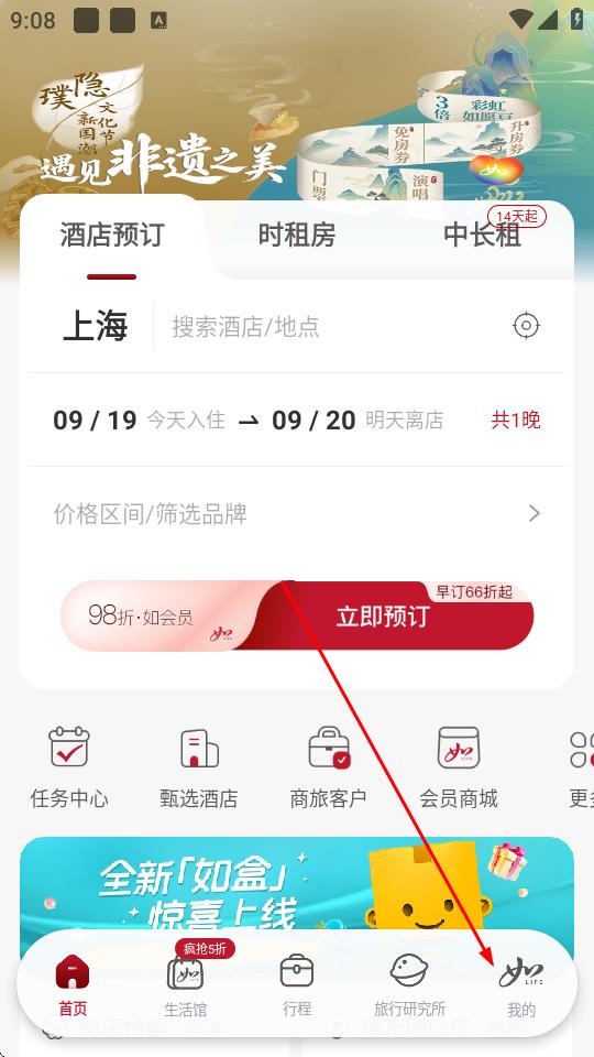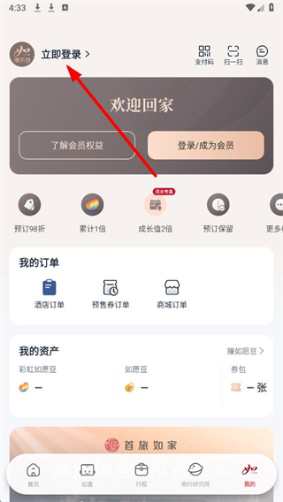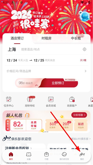 1、进入首旅如家应用后,点击底部我的选项,进入我的个人页面。