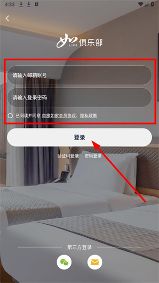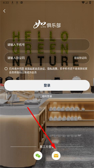3、在登录界面,点击下方邮箱图标按钮,切换至邮箱账号的登录页面。