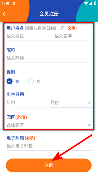 4、在会员注册页面,输入信息完整后,点击注册,完成账号注册。