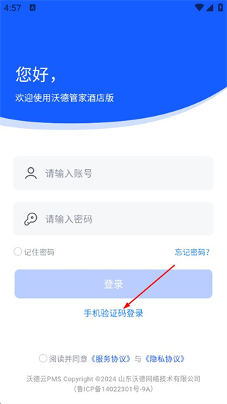 2、在登录页,点击手机验证码登录选项,切换登录方式,进行下一步的操作。