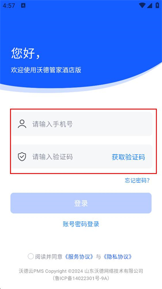 3、在手机验证码登录页,填写手机号并点击获取验证码,再填写验证码完成登录操作。