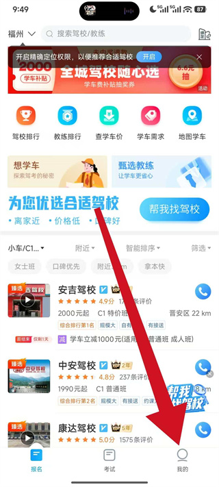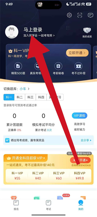 1、打开驾考宝典,进入首页后点击底部导航栏的我的,进入个人中心页面。
