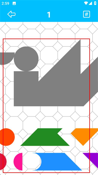 3、在拼图关卡页拖动下方七巧板部件,完成对应图案的拼接任务。