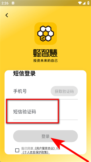 4、在输入框,输入短信验证码,勾选后,点击登录,完成登录。