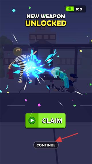 4、领取奖励,解锁新武器后,再点CONTINUE进入下一关。