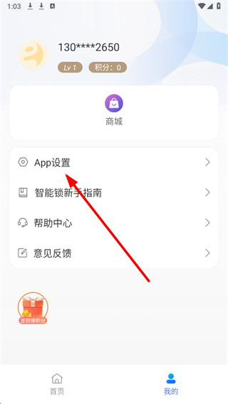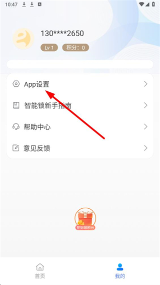 2、在我的页面中,找到App设置选项并点击,进入应用设置界面。