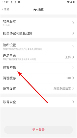 3、在App设置界面里,选择设置密码选项,触发设置登录密码的弹窗。