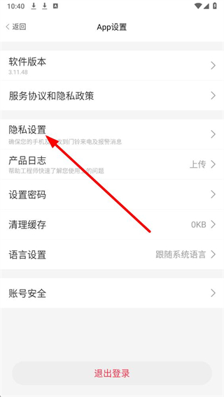3、在App设置界面里,选择隐私设置选项,进入权限管理相关页面。