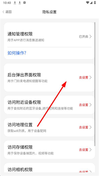 4、在隐私设置页面,选择对应权限,点击去设置即可管理该权限。
