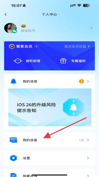 2、进入个人中心的页面内,点击我的设备的功能按钮。
