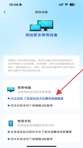 腾讯手机管家怎么添加电脑设备