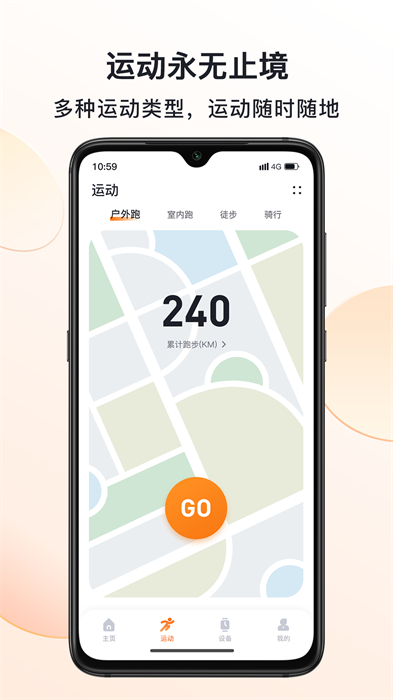 2、进入运动页面后,确认选择户外跑模式,点击页面中间的GO。