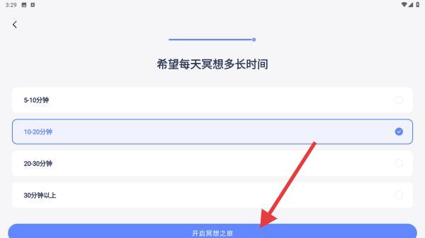 3、每日时长推荐在10-20分钟起步,完成后点击开启冥想之旅,APP将基于选择推送适配课程。