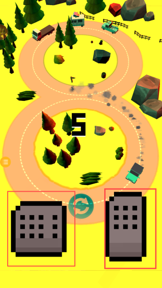 2、点击左下角图标可使汽车暂停,右下角图标可使汽车加速
