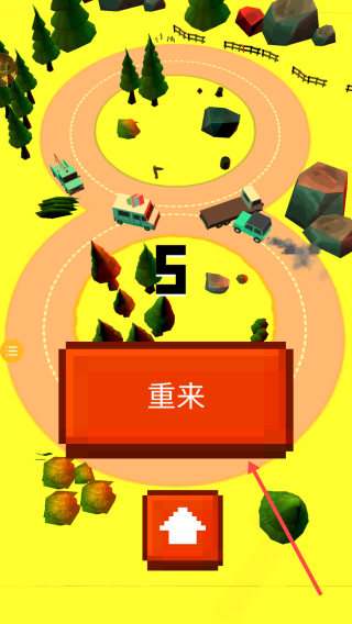 3、玩家需避免汽车碰撞,点击【重来】可再次挑战