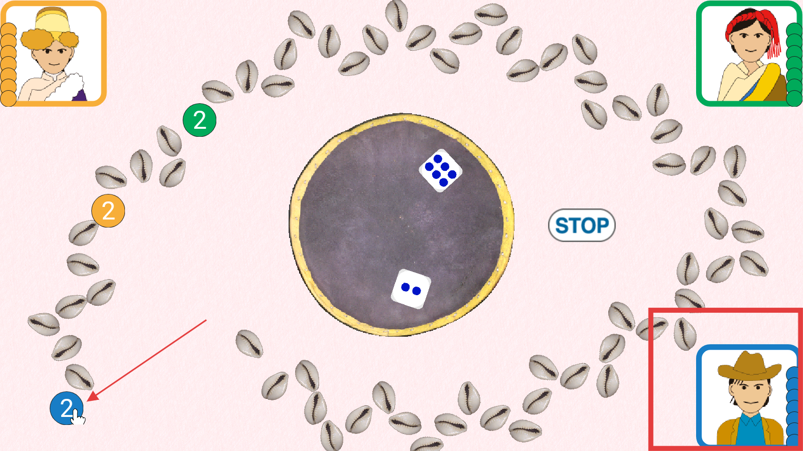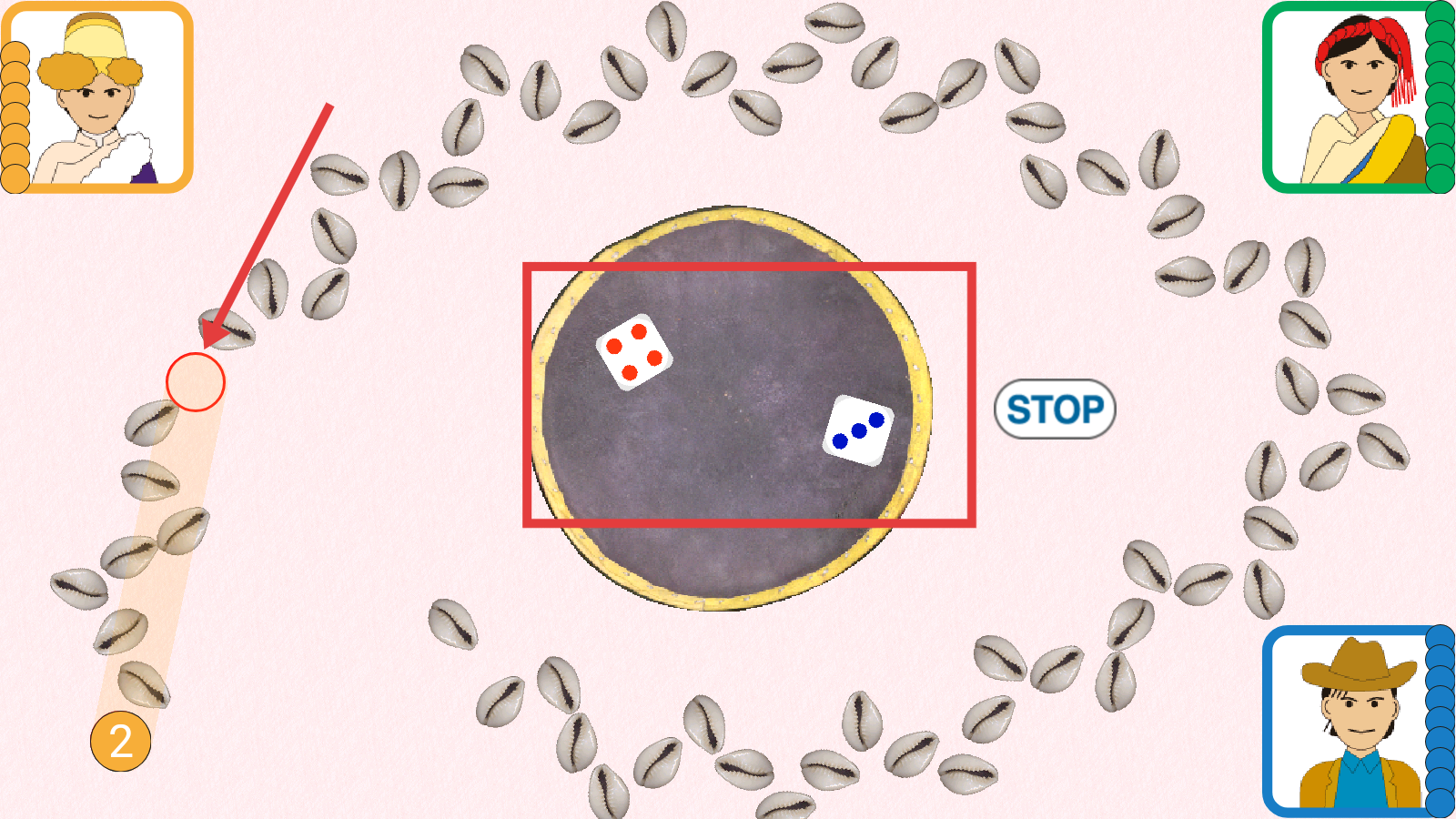 3、对局中投掷【骰子】,根据掷出的点数,操作对应区域的贝壳类道具推进回合。