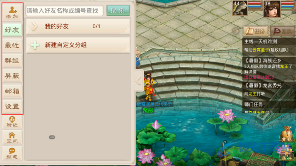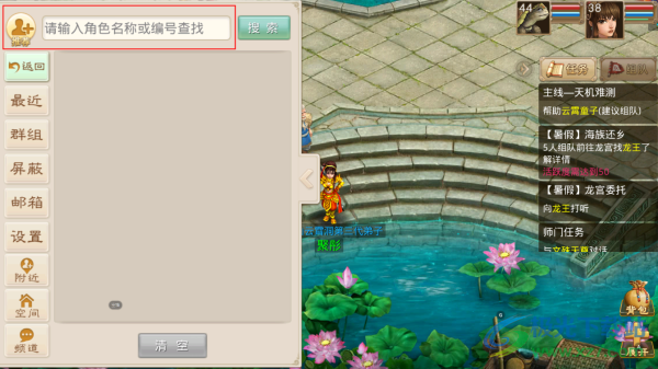 3、最近:显示本次登录期间与玩家发生过交互的角色信息,包括交流、组队等。