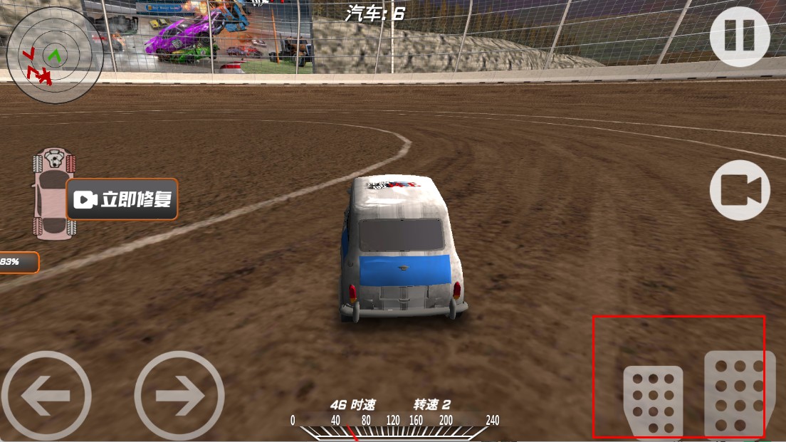 3、比赛时,用右侧踏板控制车速,加速前进。
