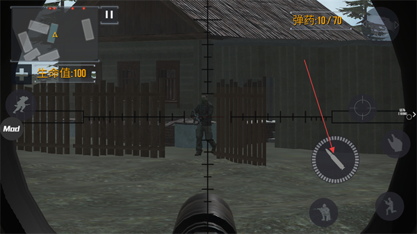 4、看见敌人时,按住箭头所指的按键射击敌人,即可完成任务。