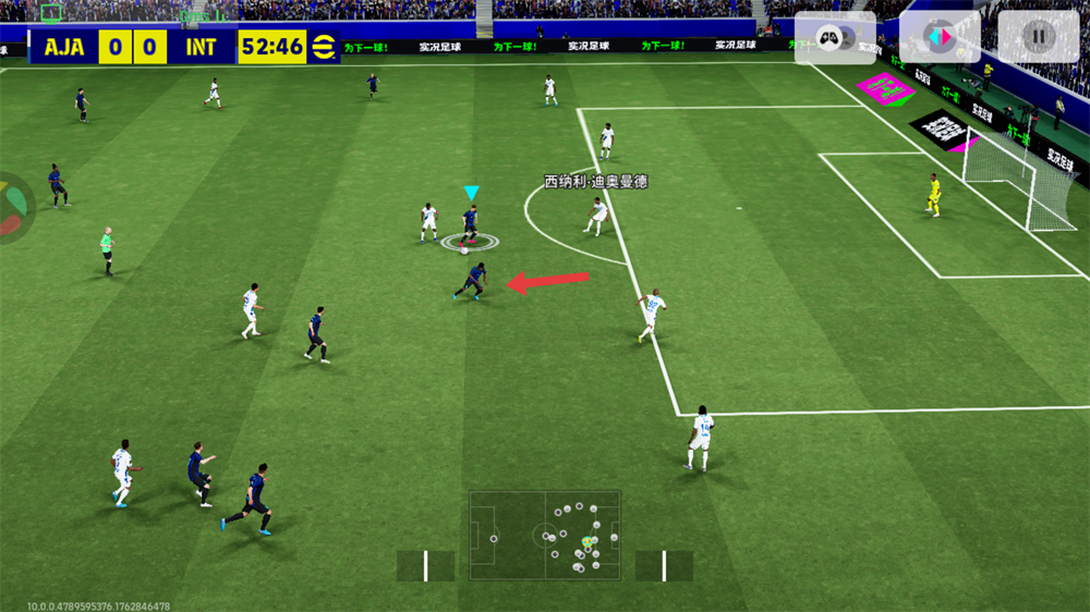 3、解围尽量使用传球,解围可以双击右侧,但是很有可能再次被对方拿到球。