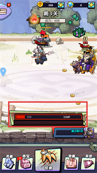 2、在第3关的战斗过程中,留意底部进度条的HP数值变化,持续推进战斗操作,直至达成通关条件。
