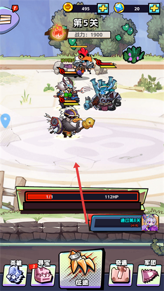 4、携带新获得的周仓进入第5关,借助其属性提升当前战力至1900,推进该关卡的战斗进程。